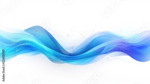Abstract Blue Waves Flowing Smoothly on a White Background