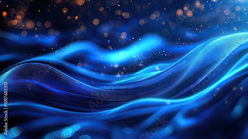 Abstract blue waves with sparkling particles create a mesmerizing effect, evoking a sense of depth and tranquility.