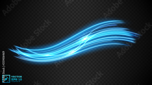 Abstract blue wavy line of light with a transparent background, isolated and easy to edit. Vector Illustration
