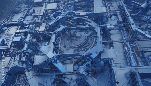 Abstract blueprint; vibrant blue, intersecting geometric shapes, industrial, style