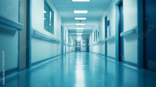Abstract blur luxury hospital corridor. Blur clinic interior background with defocused effect. Healthcare and medical concept