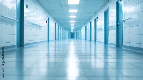 Abstract blur luxury hospital corridor. Blur clinic interior background with defocused effect. Healthcare and medical concept