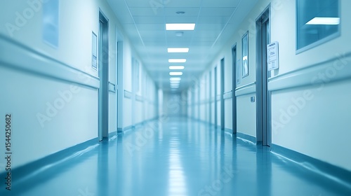 Abstract blur luxury hospital corridor. Blur clinic interior background with defocused effect. Healthcare and medical concept