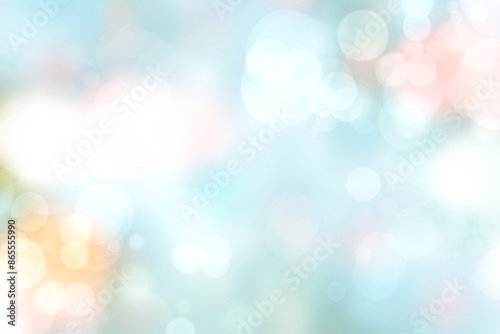 Abstract blurred fresh vivid spring summer light delicate pastel yellow pink orange turquoise bokeh background texture with bright circular soft color lights. Beautiful backdrop illustration.