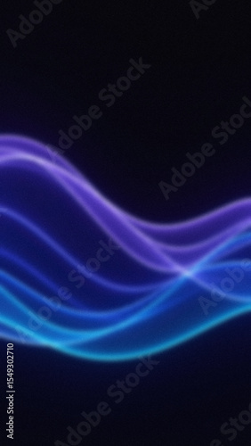 Abstract blurred wavy light patterns in shades of blue and purple against a dark background