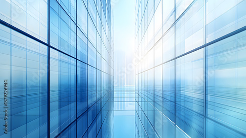Abstract Blurry Office Background with Soft Blue Gradients and Glass Reflections