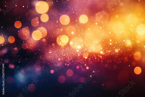 Abstract bokeh background with warm and cool colors, glittering lights, and a magical feel.