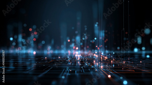 Abstract Bokeh Pattern of Blue and Orange Lights a close up of a city with many lights and buildings detailed