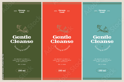 Abstract botanical vector cosmetics printable label design template for branding packaging design