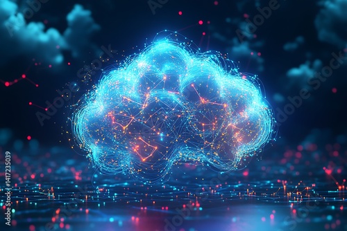 Abstract brain, neural network, digital cloud