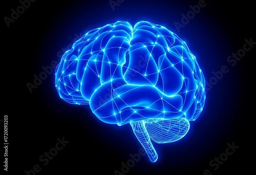 Abstract brain shape formed by intersecting vector lines, glowing blue, technology, neurology