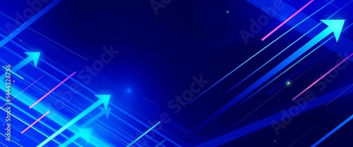 Abstract bright blue tech background with diagonal stripes and dynamic arrows, backdrop, screen