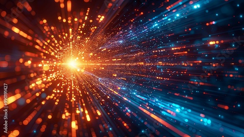 Abstract Bright Lines and Lights Radiating from a Central Point