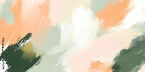 Abstract brushstrokes in warm tones: A calming and serene abstract art piece featuring soft pastel colors, with a focus on earthy greens and warm peach hues.