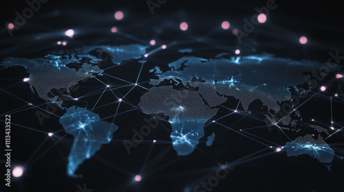 abstract business connection of line from nail node to node on world map background Innovation network points Earth's surface