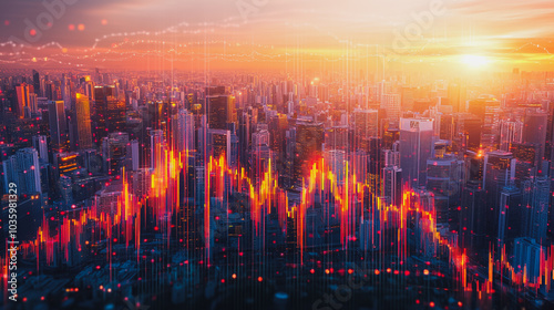 Abstract business smart city and charts and graphs with statistics to innovative analyze business potential and forecast future development of companies growth.