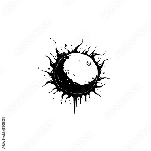 Abstract celestial black and white design featuring a stylized sun and moon
