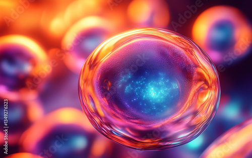Abstract Cell Structure with Glowing Core, Microscopic View, Science Concept