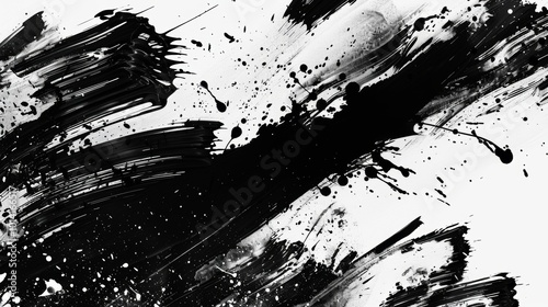 Abstract Chaotic Brush Stroke Explosion in Monochrome Tones