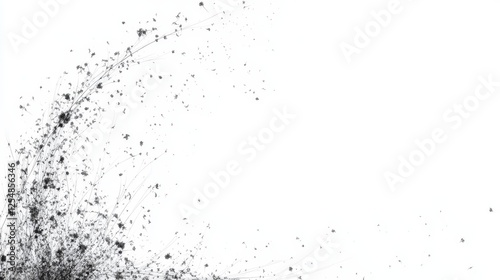 Abstract Chaotic Dark Twigs and Spots Forming a Curved Pattern Against a White Backdrop