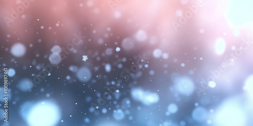 abstract christmas background with macro falling snowflakes and soft bokeh, cold colors and cozy atmosphere
