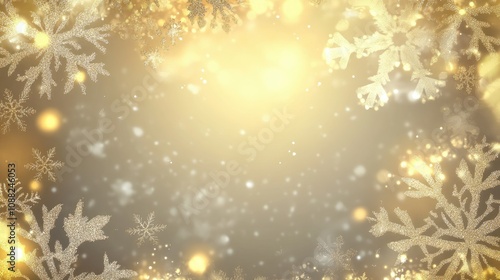Abstract Christmas border with delicate gold snowflakes, ideal copy space for holiday messages on transparent background.
