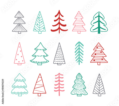 Abstract Christmas tree icon set. Hand drawn X-Mas decorations. Vector illustration
