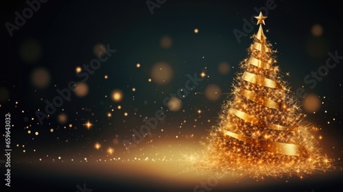 Abstract christmas tree with golden bokeh lights. holiday background concept.