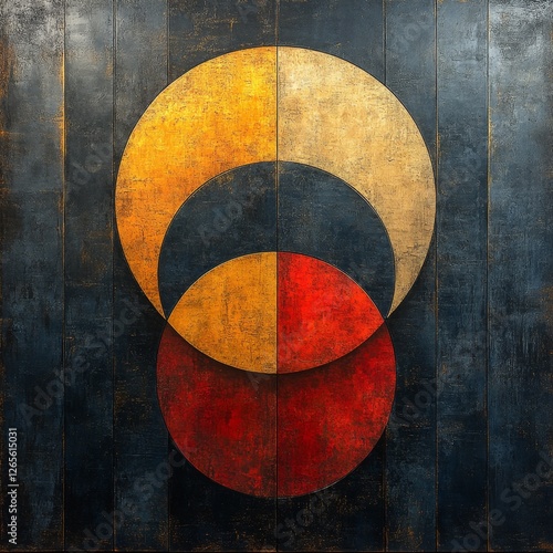 Abstract Circle Composition with Gold, Black, Red and Yellow Tones