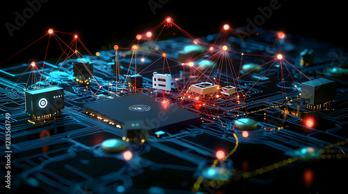 Abstract Circuit Board Network With Glowing Lines And Digital Connections