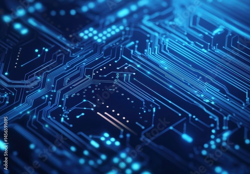 Abstract Circuit Board Pattern in Blue and Black Color Scheme