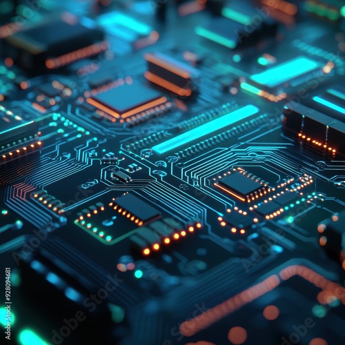 Abstract Circuit Board with Blue and Orange Glowing Lights - Technology Background.
