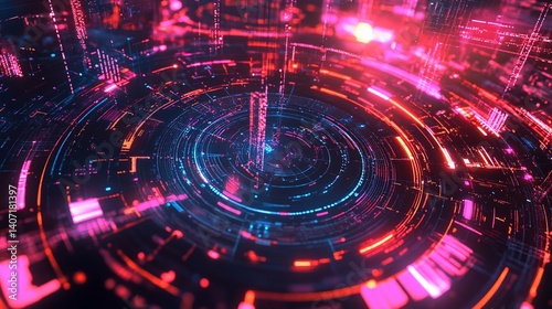 Abstract Circular Data Stream Visualization with Glowing Digital Lines