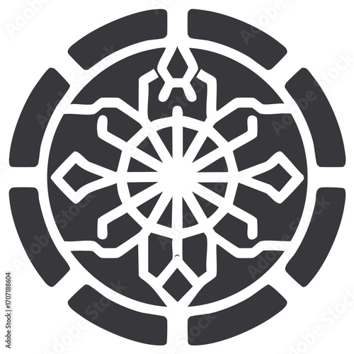 Abstract Circular Design with Geometric Elements Snowflake Symbol Wheel Pattern Mandala Style Illustration Ornate Ornament Motif