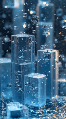 Abstract city of cubes in water