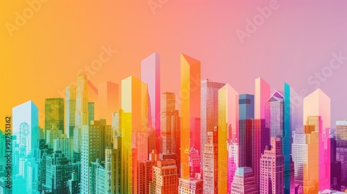 Abstract city skyline, vibrant colors, geometric shapes, modern and dynamic, perfect for an urban-themed room