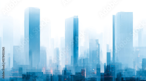 Abstract cityscape with modern skyscrapers in cool blue tones