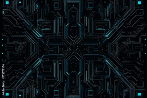 Abstract close-up of a glowing blue digital circuit board, showcasing intricate connections and technological design on a black background.