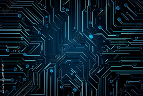 Abstract close-up of a glowing blue digital circuit board, showcasing intricate connections and technological design on a black background.