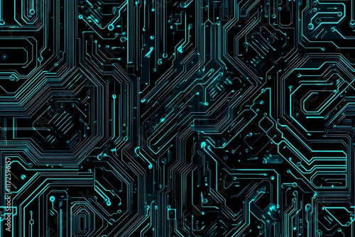 Abstract close-up of a glowing blue digital circuit board, showcasing intricate connections and technological design on a black background.