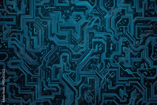 Abstract close-up of a glowing blue digital circuit board, showcasing intricate connections and technological design on a black background.