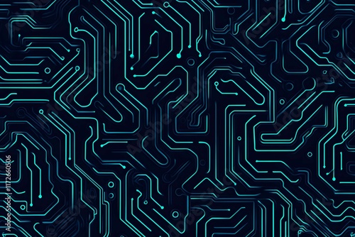 Abstract close-up of a glowing blue digital circuit board, showcasing intricate connections and technological design on a black background.