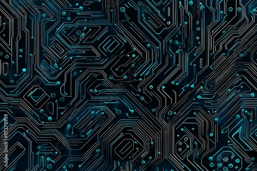 Abstract close-up of a glowing blue digital circuit board, showcasing intricate connections and technological design on a black background.
