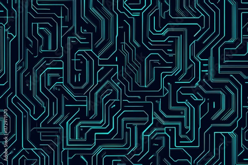 Abstract close-up of a glowing blue digital circuit board, showcasing intricate connections and technological design on a black background.