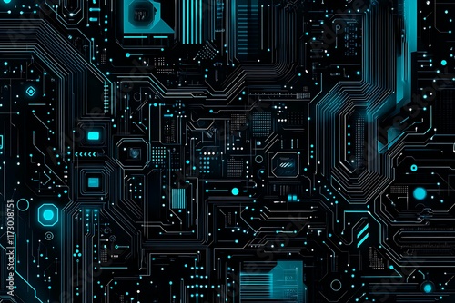 Abstract close-up of a glowing blue digital circuit board, showcasing intricate connections and technological design on a black background.