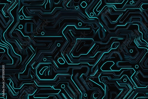 Abstract close-up of a glowing blue digital circuit board, showcasing intricate connections and technological design on a black background.