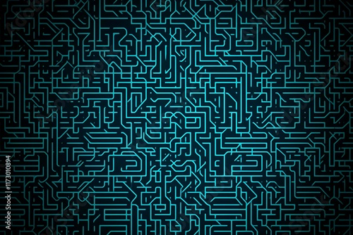 Abstract close-up of a glowing blue digital circuit board, showcasing intricate connections and technological design on a black background.