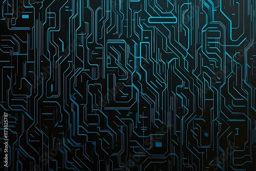 Abstract close-up of a glowing blue digital circuit board, showcasing intricate connections and technological design on a black background.