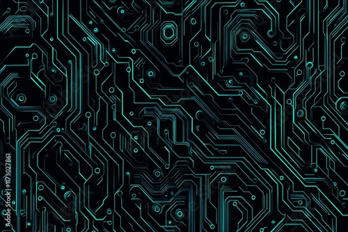 Abstract close-up of a glowing blue digital circuit board, showcasing intricate connections and technological design on a black background.