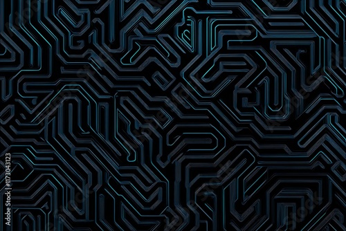 Abstract close-up of a glowing blue digital circuit board, showcasing intricate connections and technological design on a black background.